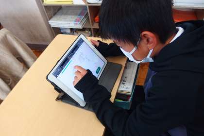 デジタルドリル(Qubena)で復習をしている5年生です。