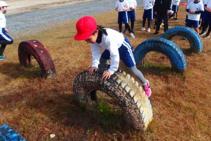 11月22日の東広瀬小学校(23) 公開日 2022/11/24 更新日 2022/11/24 活動の様子 1年生の体育の授業です。 体育館で跳び箱を跳ぶ前に、運動場のやわらかいタイヤでを使って、まずは脚を開く練習です。