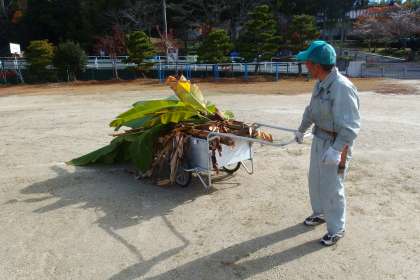 校内整備員さんがバナナの葉を刈ってくれました。