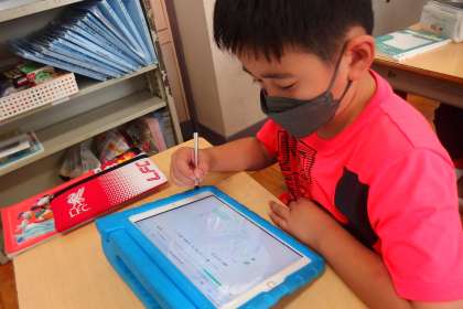 デジタルドリル(Qubena)で復習をしている2年生です。