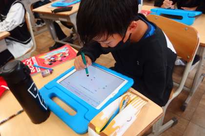 デジタルドリル(Qubena)で復習をしている2年生です。