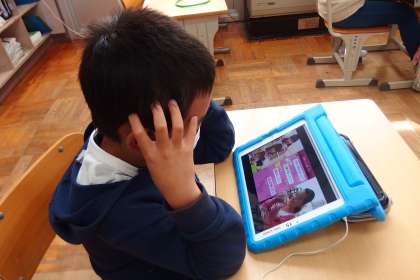 タブレットで動画を視聴している3年生です。