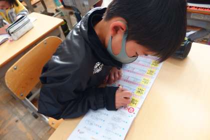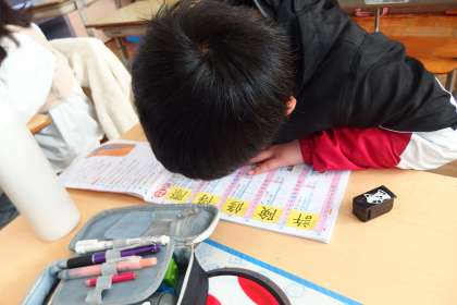 わかばタイムの様子です。 漢字ドリルに真剣に取り組んでいる5年生です。