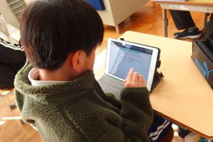 わかばタイムの様子です。 デジタルドリル(Qubena)で学習内容の定着を図る6年生です。
