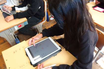 デジタルドリル(Qubena)で学習内容の定着を図る5年生です。