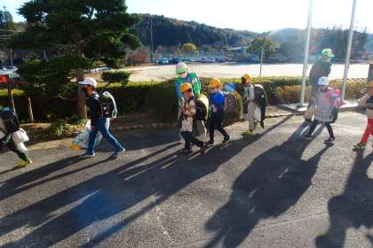 緑の帽子の方々は下校の見守りをしてくれているサポーターの方々です。