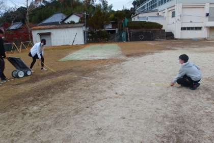 明日から始まる「走れ走れ」活動のために、6年生が運動場にラインを引いてくれました。