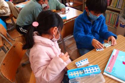 ペアやトリオで計算の解き方を話し合い、学び合いで進めています。