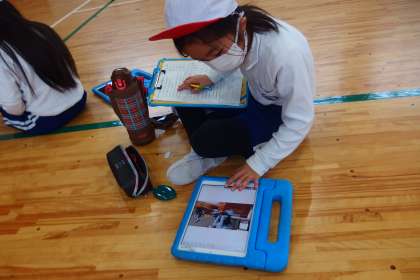 11月28日の東広瀬小学校(30) 公開日 2022/11/28 更新日 2022/11/28 活動の様子 2年生の体育の授業です。 跳び箱を学習中です。 同じグループ内でお互いの跳び方を動画撮影しました。 授業の最後の振り返りの時間に、タブレットで自分の跳び方をチェックして、次の授業につなげていきます。