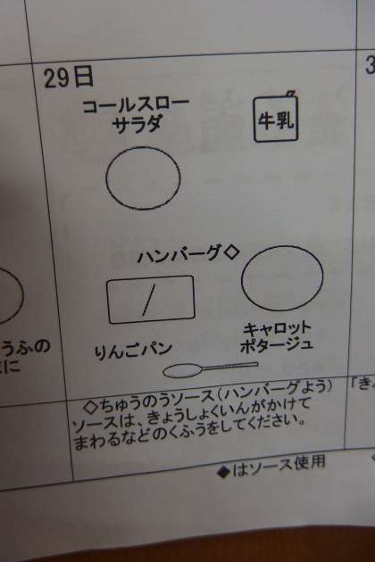 今日の給食のメニューです。