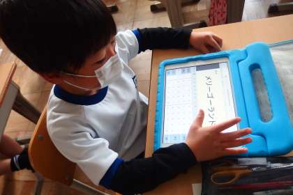 テーマを各自で決めて、それに沿ったレポートをタブレットの発表ノートで作成していました。