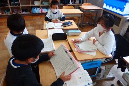 3年生の国語の授業です。 グループになって話し合い、学び合いの授業です。