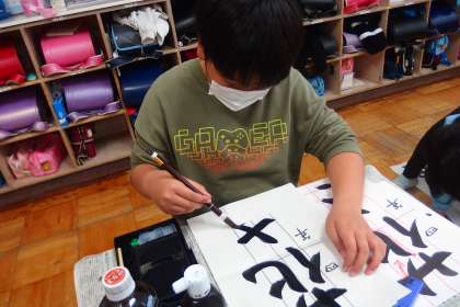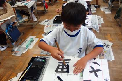 4年生の書写の授業です。 書初めの練習が始まりました。