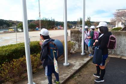 旗の掲揚をしてくれた今週の週番のみなさんです。