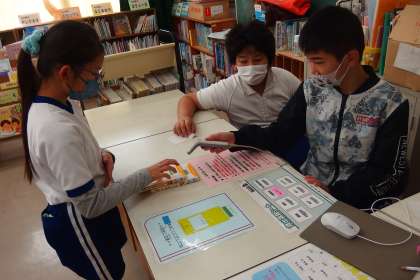 図書システムのパソコンを操作して、本の貸し出し、返却の手続きをしてくれている図書委員です。