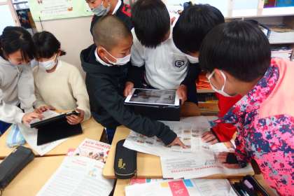 11月30日の東広瀬小学校(23) 公開日 2022/11/30 更新日 2022/11/30 活動の様子 5年生の英語の授業です。 ALTの先生と英会話する内容をグループで話し合っています。 ときおりタブレットを使って調べていました。