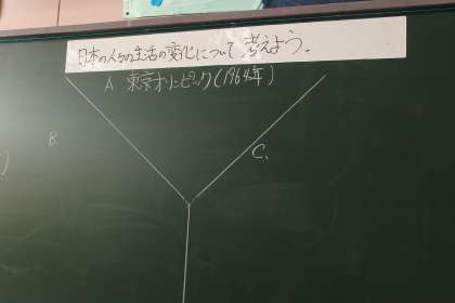 6年生の社会の授業です。 前回1964年の東京オリンピックのことを学習していました。