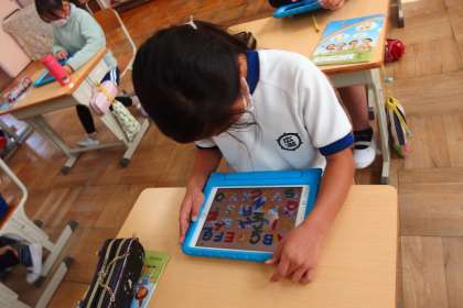 12月1日の東広瀬小学校(50) 公開日 2022/12/01 更新日 2022/12/01 活動の様子 3年生の外国語活動の授業です。 タブレットを使ってアルファベットの大文字の順序をおぼえているところです。