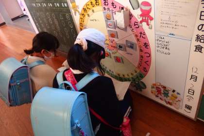 12月2日の東広瀬小学校(30) 公開日 2022/12/03 更新日 2022/12/03 特別活動 今日の給食の献立情報と栄養情報を記入してくれている保健給食委員です。 毎日の給食の献立は、パソコンやタブレット、スマホで、本校ホームページのトップページのリンクからもみることができます。 12月の献立