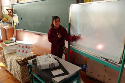 12月5日の東広瀬小学校(3) 公開日 2022/12/05 更新日 2022/12/05 活動の様子 1年生の算数の授業です。 担任の先生がタブレットから問題をスクリーンに映し出し、みんなで一緒に解き方を学んでいました。