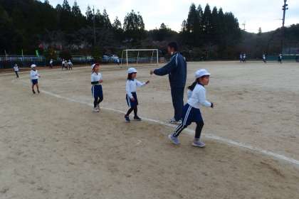 今朝も早い時間から何周も走っている子どもたちです。