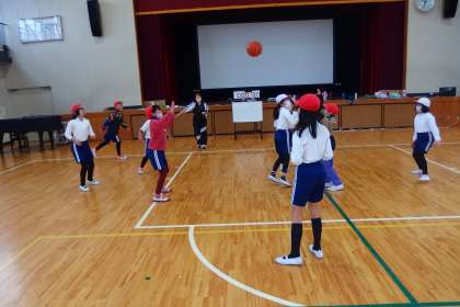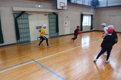 4年生の体育の授業です。 バスケットボールをしていました。