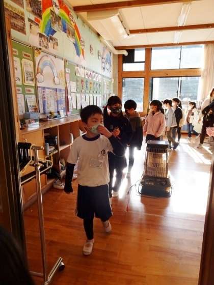 1・2年生が一緒に勉強している教室の中にも入らせていただきました。