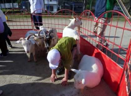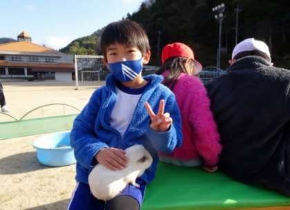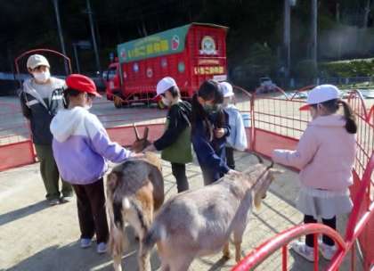 「校長先生見て!ヤギにまぎれてる!」 さて、だれだと思います?ヤギにまぎれちゃった子は。