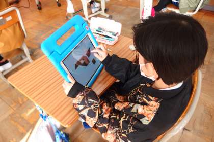 タブレットのアプリで復習をしている4年生です。