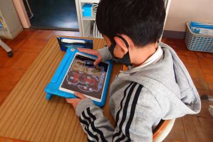 タブレットのアプリで復習をしている4年生です。