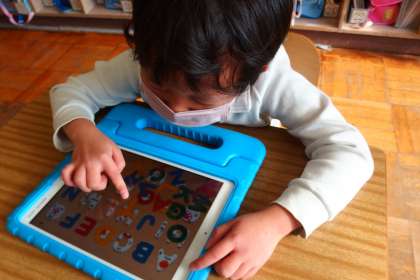 12月14日の東広瀬小学校(43) 公開日 2022/12/14 更新日 2022/12/14 活動の様子 2年生の外国語活動の授業です。 タブレットのアプリ「ABCパズル」に取り組んでいる2年生です。