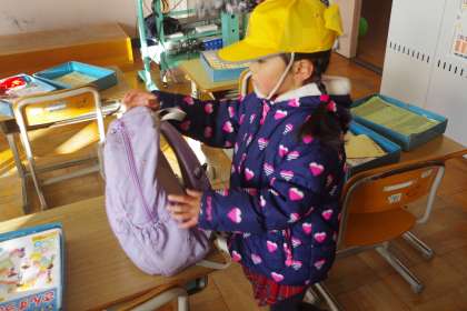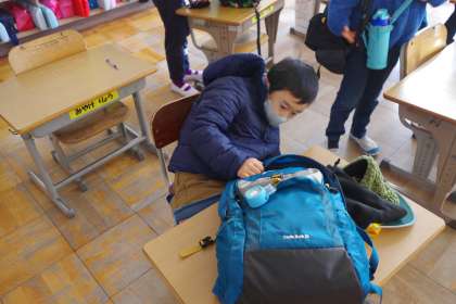 遠足出発前のざわざわした教室です。