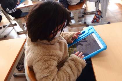 タブレットを使って復習をしているところです。