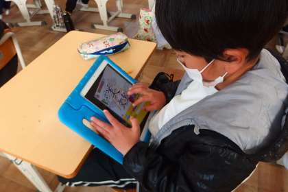 タブレットを使って復習をしているところです。
