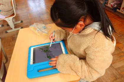 タブレットを使って復習をしているところです。
