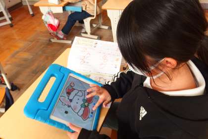 タブレットを使って復習をしているところです。