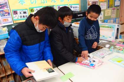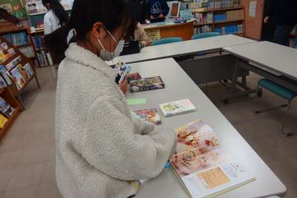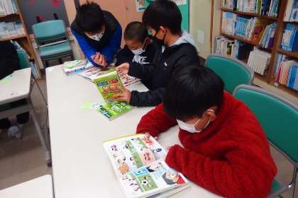 冬休み用の図書を借りに来たついでに、図書館で読書タイムとなった5年生。