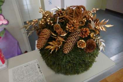 本校は造り酒屋ではありませんが、子どもたちに見てもらえるように、装飾用の杉玉を昇降口に置いています。