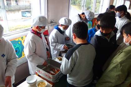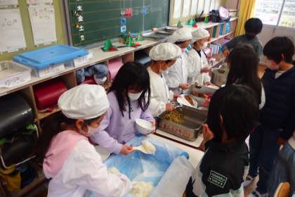 給食の配膳の様子です。