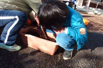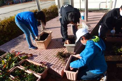 次の植え替えのための準備をする特別支援学級のみなさんです。