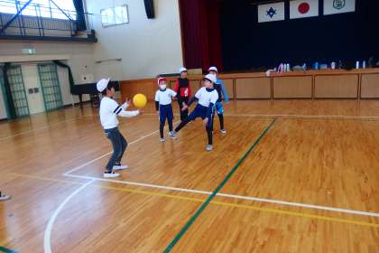 ドッジボールを楽しむ3年生。