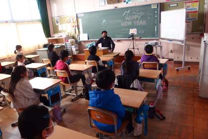 Teamsでつないだオンライン全校集会を視聴する3年生です。