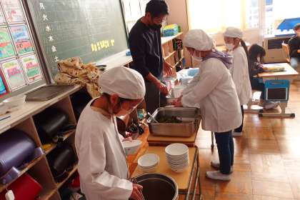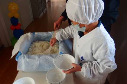 給食の配膳の様子です。