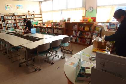 図書館の蔵書の整理整頓を進めてくれている学校図書館司書さんと広瀬っ子サポーターズの方です。