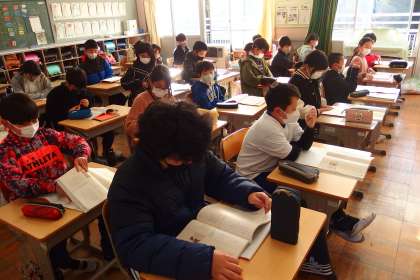 5年生のわかばタイムの授業の様子です。 古文「枕草子」を学習していました。