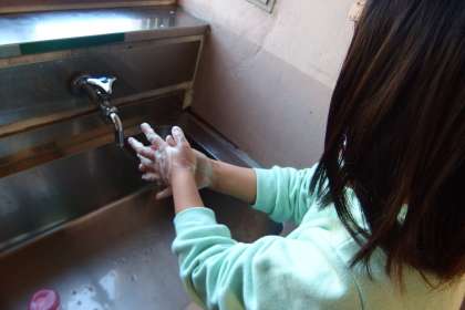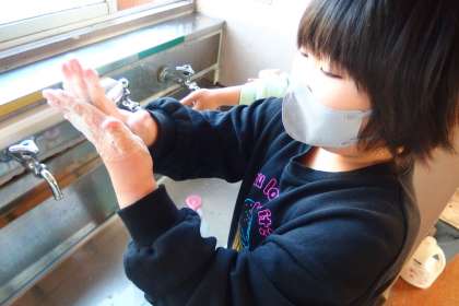 せっけんをしっかり泡立てて手洗をしていました。