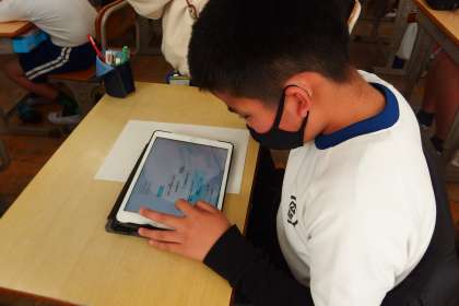 タブレットを使って、調べ学習を進めていました。