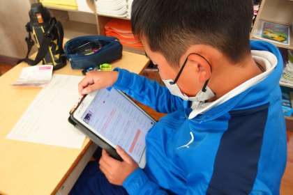 タブレットを使って、調べ学習を進めていました。