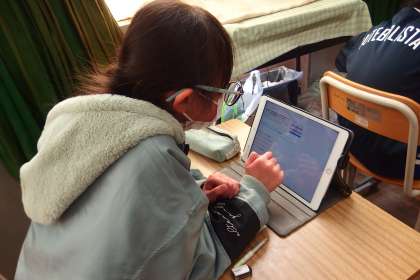 タブレットを使って、調べ学習を進めていました。