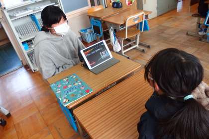 キャリア学習で学んだこと、調べたことをまとめた6年生が、その内容をタブレットを使いながら4年生に発表しました。